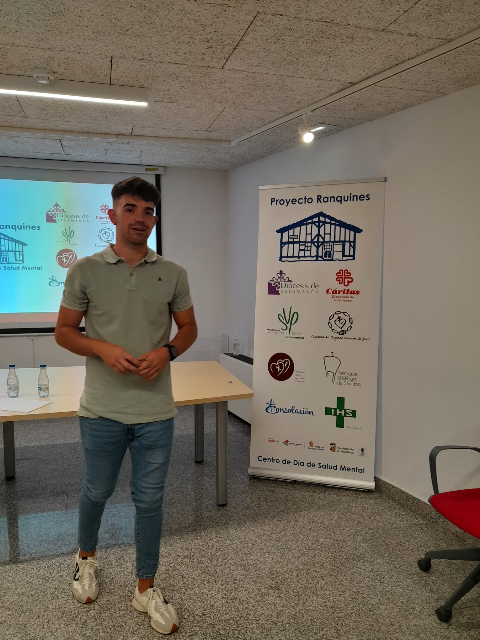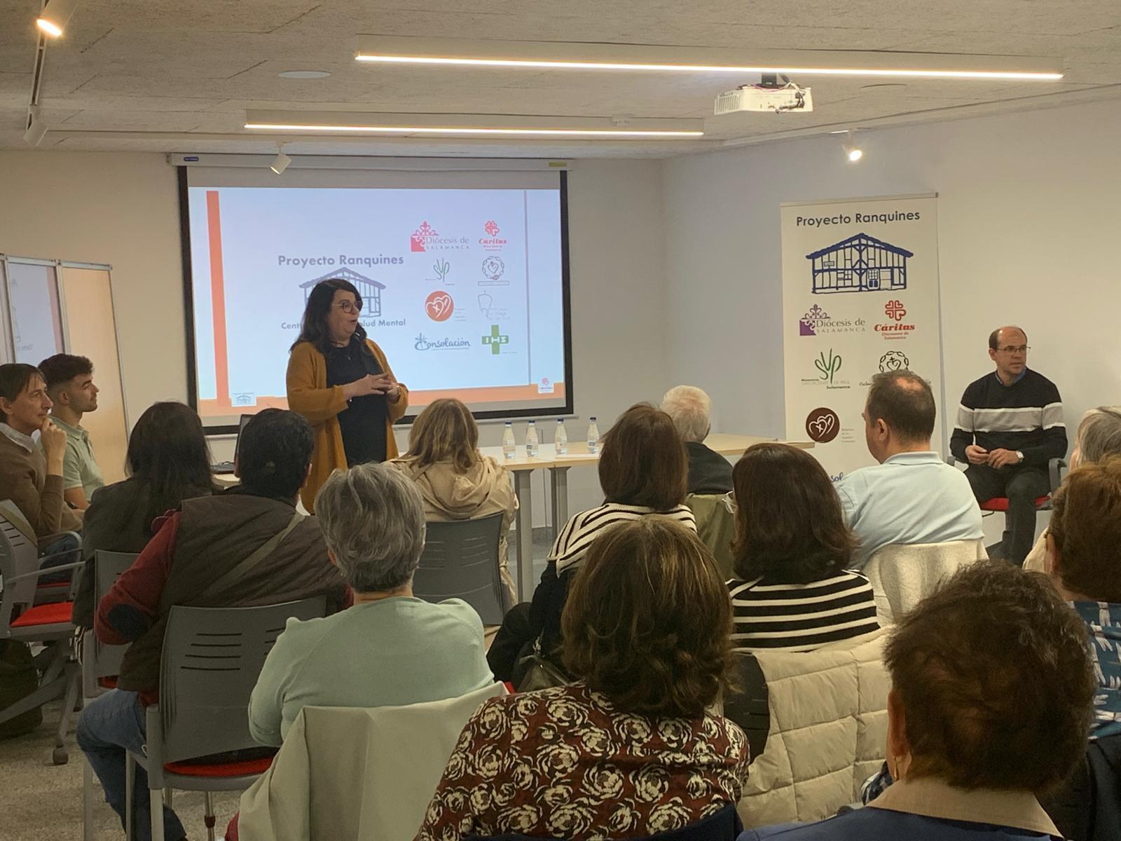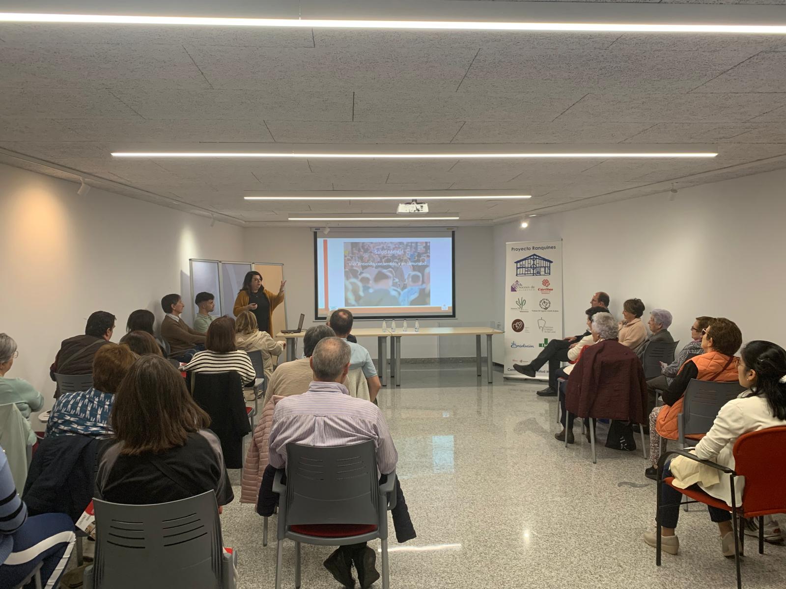 El pasado jueves 23 el equipo de Ranquines se desplazó hasta Guijuelo para una jornada de sensibilización sobre Salud Mental en el auditorio del Ayuntamiento de la ciudad, bien preparado para el evento gracias a los desvelos de las concejalas Yolanda Alonso y Sara García. El párroco de la localidad, el P. Amable García, presentó el acto donde explicamos algunos conceptos básicos entorno a la salud mental, dimos a a conocer el proyecto Ranquines y su reciente extensión al mundo al mundo rural.